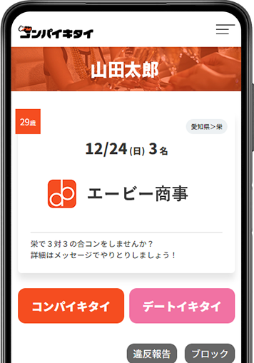 違反報告システムを導入しています。不審なユーザーは強制退会となります。